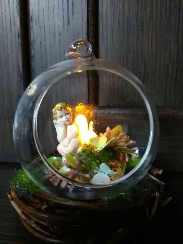 ダイソーの天使ピック、テラリウム?、セリアのミニリース、フェイクのロウソク。リアル植物無しの投稿が続いて反省しています😿