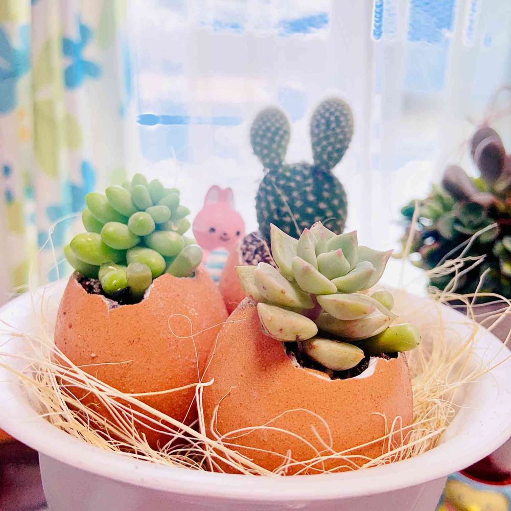 uguisuさんの部屋,エッグポット,多肉植物寄せ植え☘️の投稿画像