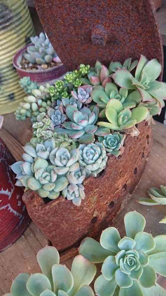 前に錆びアイロンに寄せ植えした多肉さん😊