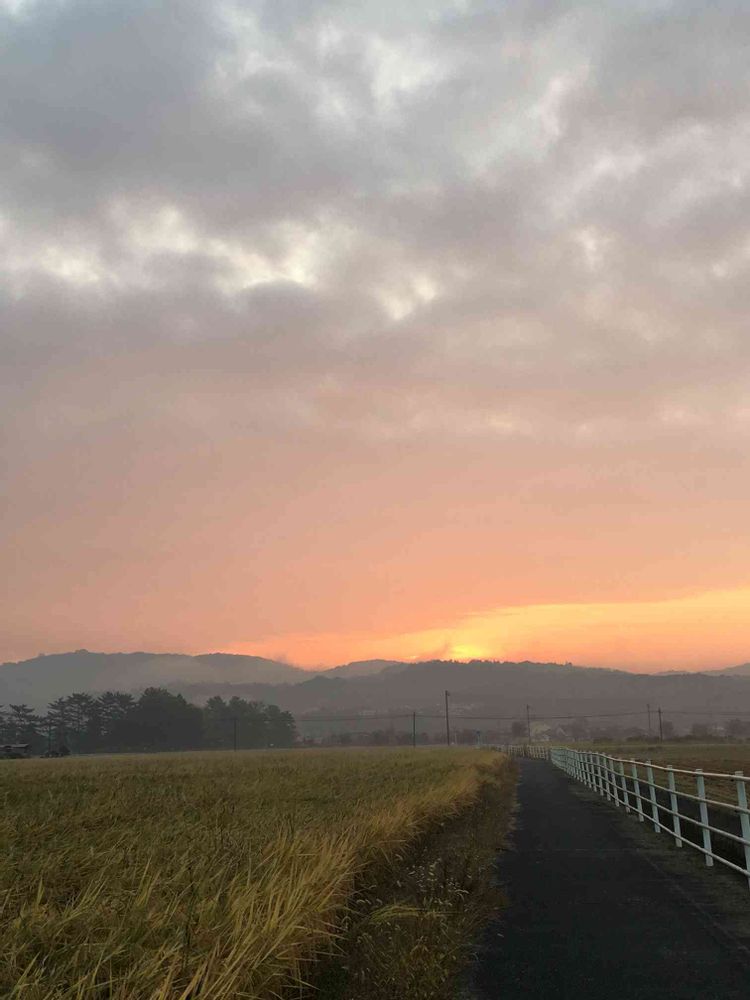 おはようございます😃今朝の散歩道です。朝焼けが綺麗でした。今日も1日元気で頑張りましょう😊