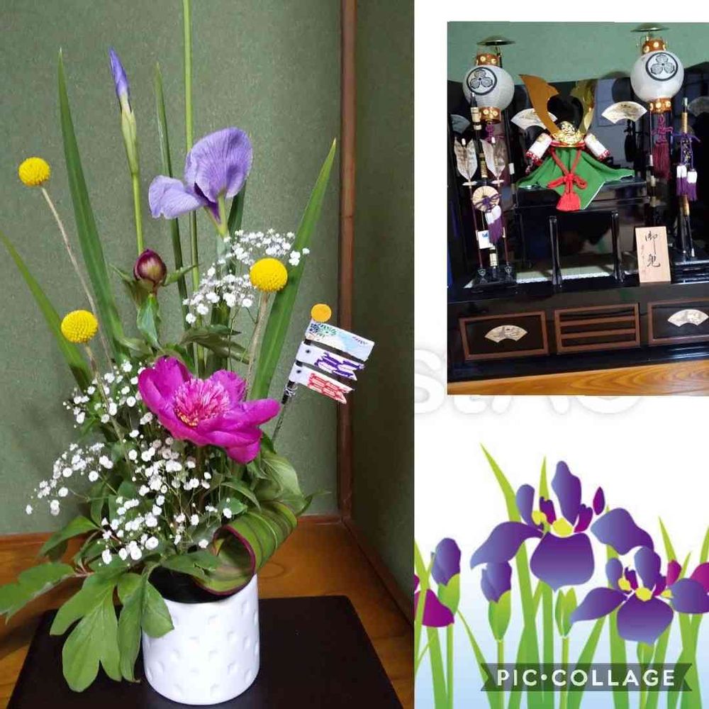 さん、菖蒲、芍薬5月のアレンジメントですね✨ちゃんと🎏も🎵