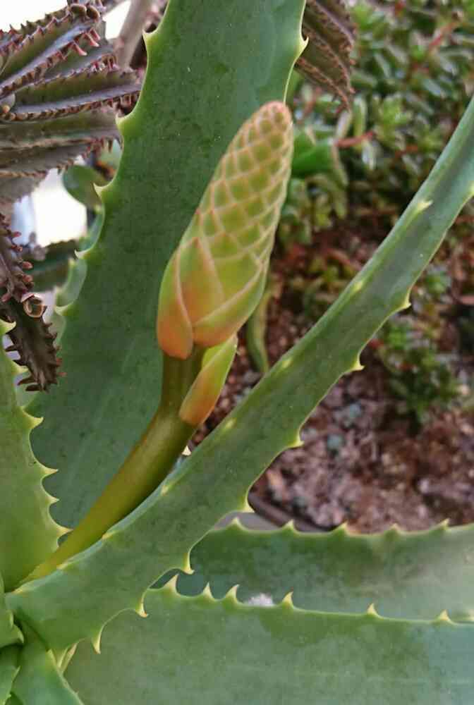 アロエの花は株がもっと大きくなってから咲くものだと思ってました。我が家にきて初めての秋と冬。