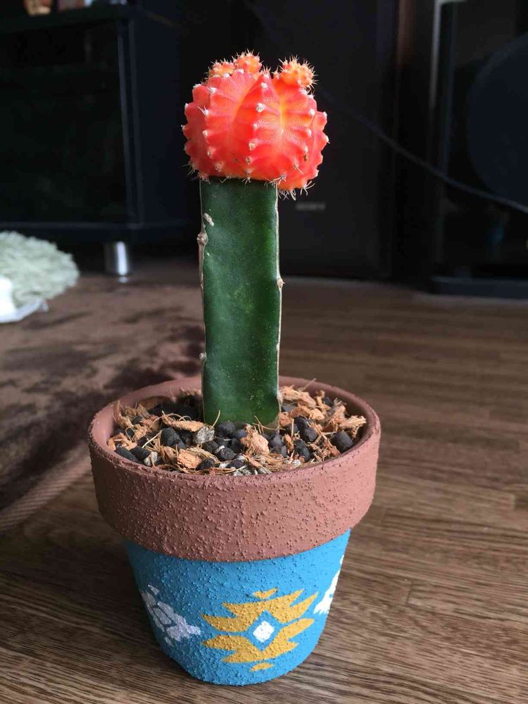 ハロウィン仕様のせいで半額だった緋牡丹を、先日の帰省の時に行ったLIER.さんで買ったリメ鉢に植え替えました🎶