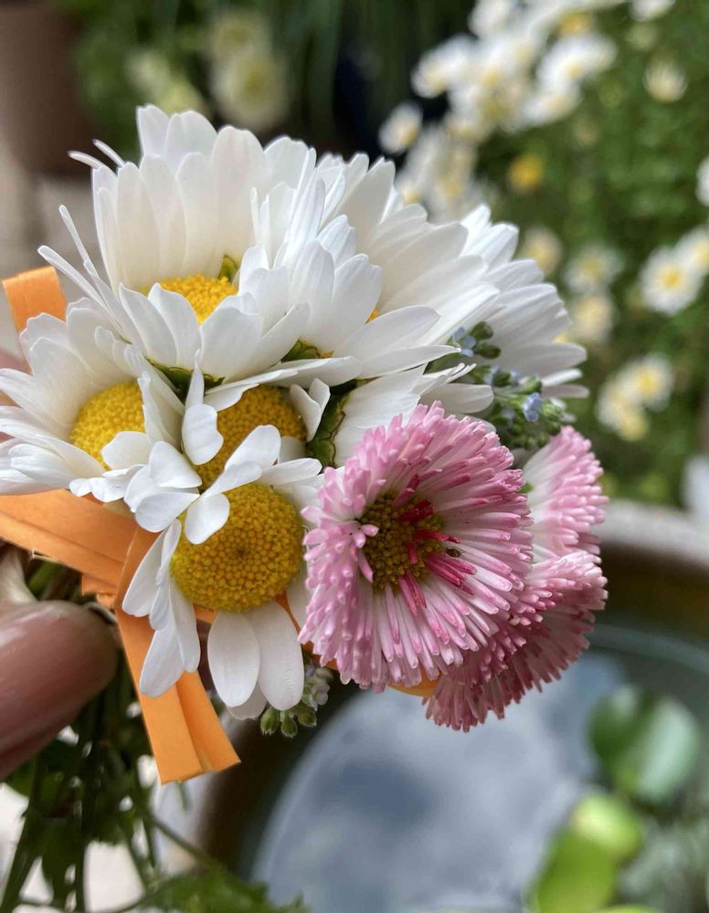 狭小庭に咲いてる終わりを迎えそうなお花でミニ💐花束。
