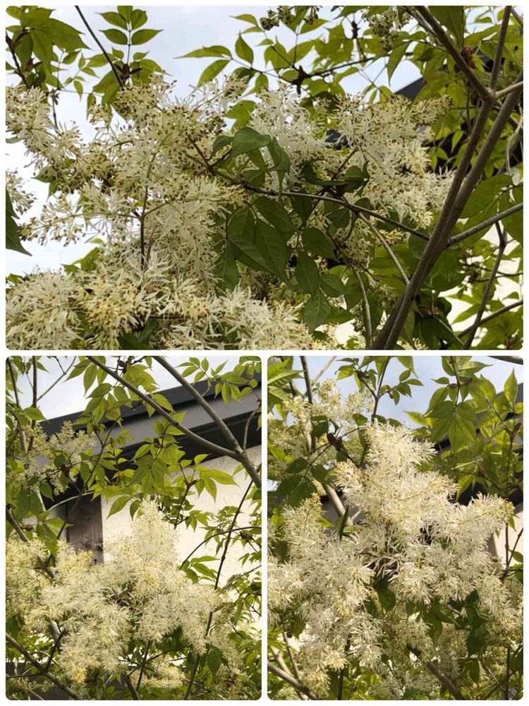 庭のマルバアオダモの花が咲き始めましたが、強風で飛んでしまった花もあります。