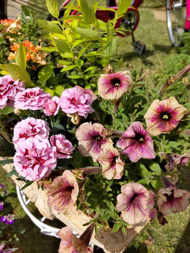 ペチュニアを使って寄植えを更新。