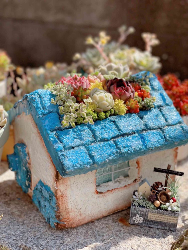 モルタルハウスに可愛い寄せ植えしてる💕😋