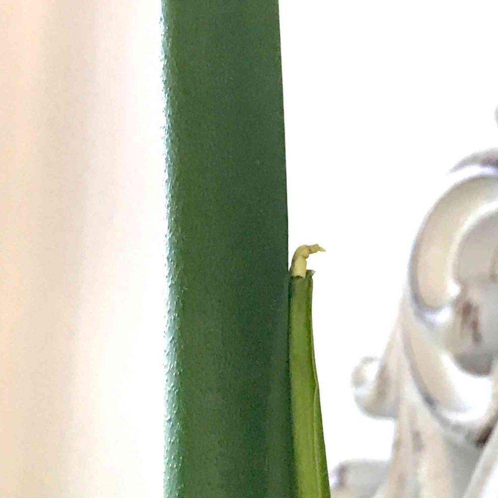 折れ曲がっておさまっていた新葉の先っぽが、ピンと出ました。
