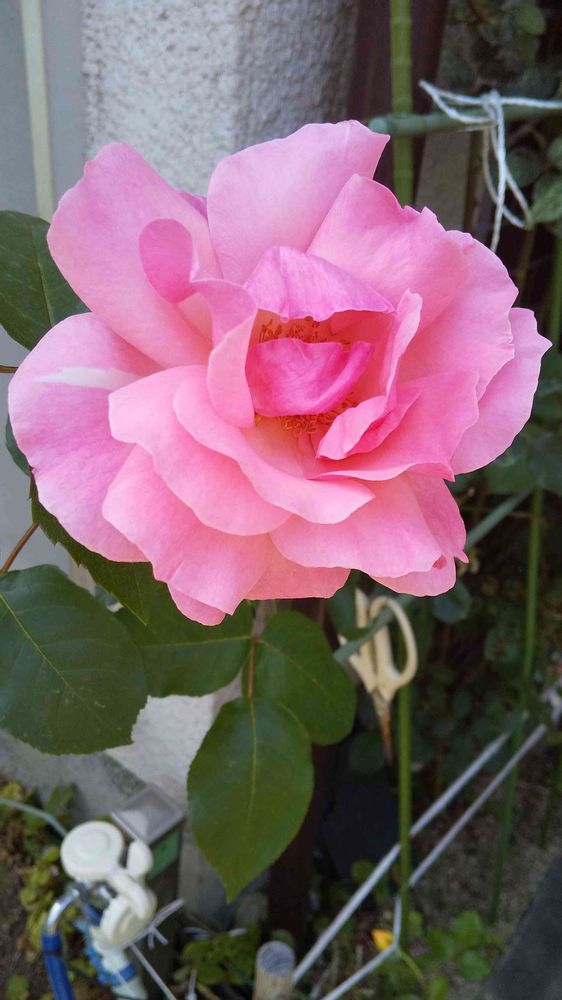 大阪府民の森の帰り道、実家に寄りました。ピンク色のバラ「シャコック」が咲いていました。🌺🌞😷