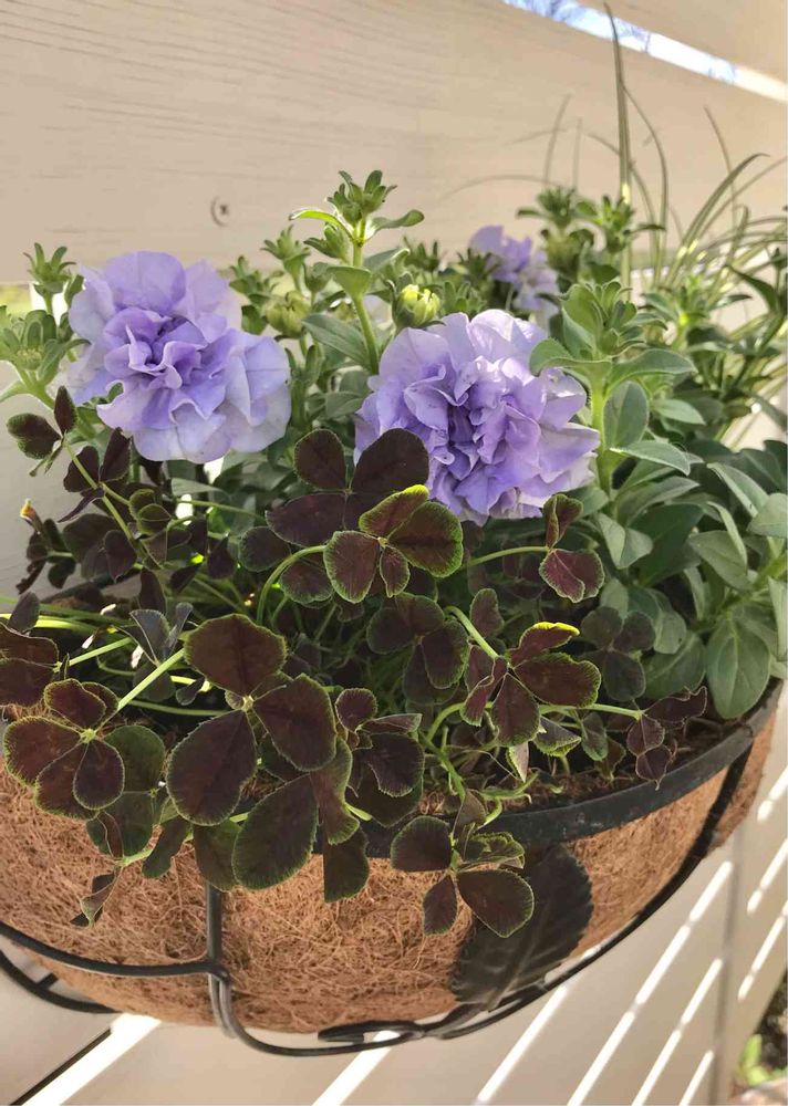 綺麗なすみれ色のペチュニアに、ブラッククローバーが微妙〜ですが💦
