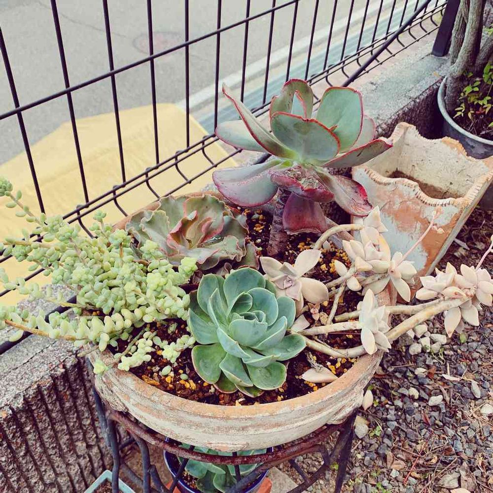 鉢の整理も兼ねて、初めて多肉の寄せ植えしました