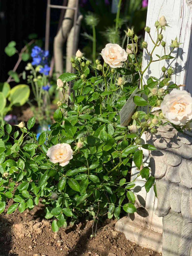 こちらも昨日お迎えして・・地植えにしました(^.^)なんと棘のないつるバラ❗️横の白い柱に絡ませて楽しみたいと思います♪(´ε` )
