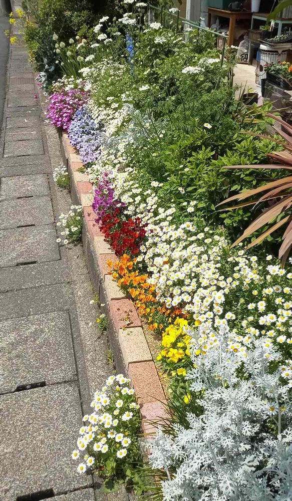 細長い花壇にいつもワンパターンな植栽になっちゃうのですが💦、みんな綺麗に咲いてくれました✨