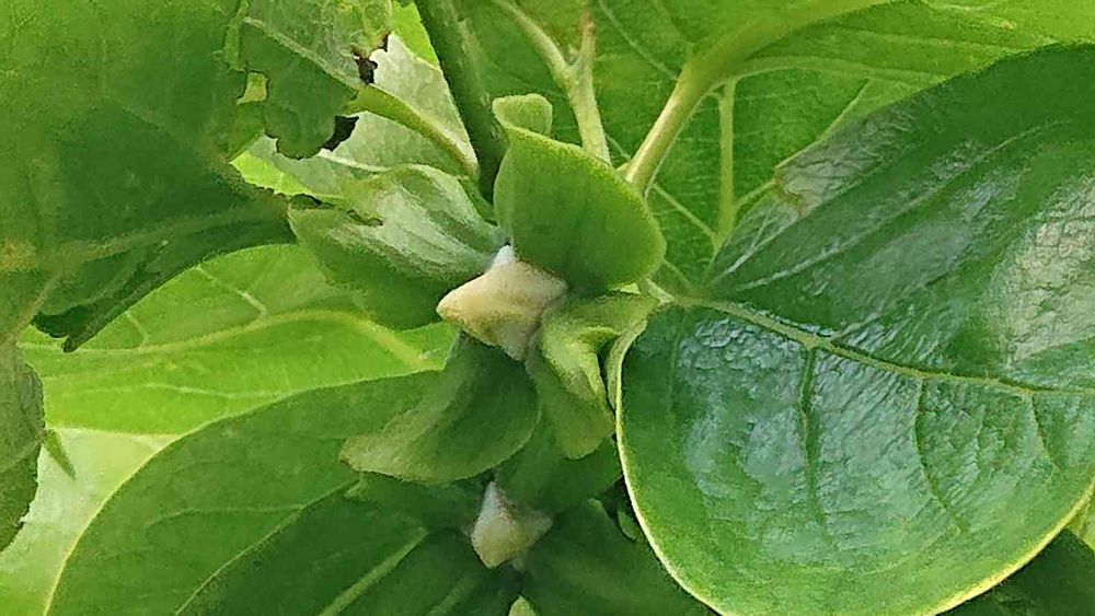 百目柿(の甘柿)の花(蕾)が膨らんで来ました。初夏の装い、緑が萌えています🎵❣️。