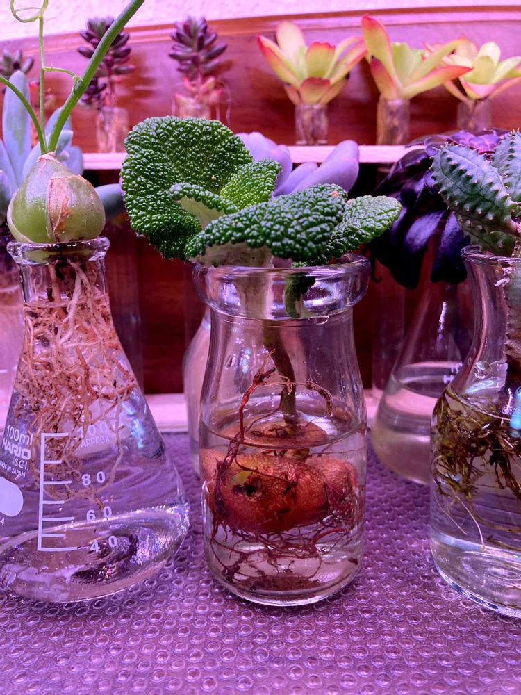 2021/2/21から自室で多肉植物の水耕栽培を始めました! フォロー大歓迎です! 自室は太陽光が一切差さないので、光は植物育成用LEDのみを使っています。 完全な初心者ですがよろしくお願いします!