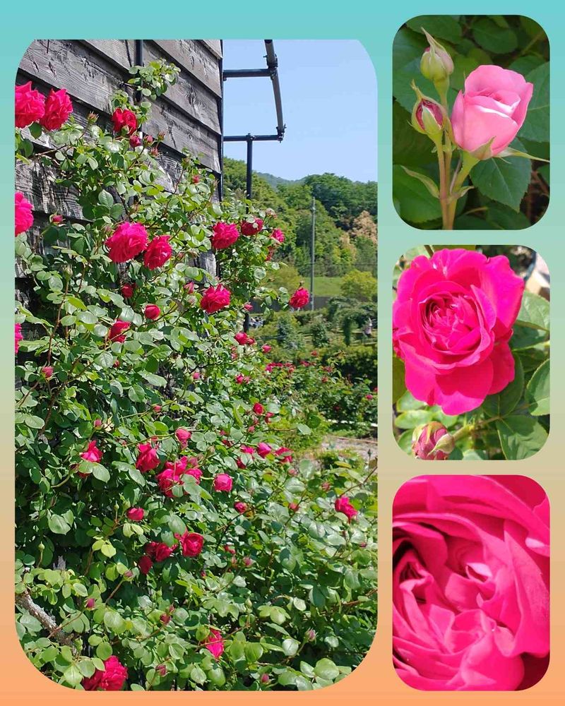 素敵な色のバラ🌹🌹壁いっぱいに咲き誇り〜