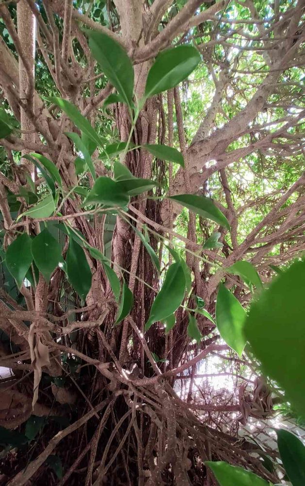 娘が葉を手で押し分けて覗き「中すごいよ!トトロみたい!」(枝葉をくぐったら別世界へ行った的な🤭)