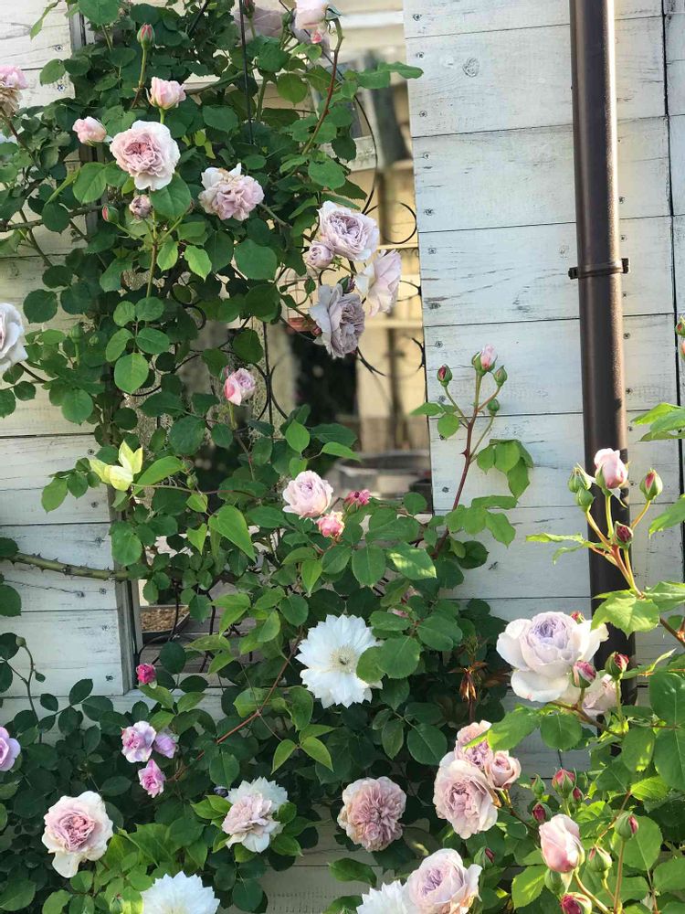 家の壁沿いに咲くバラは憧れるわ⤴️⤴️