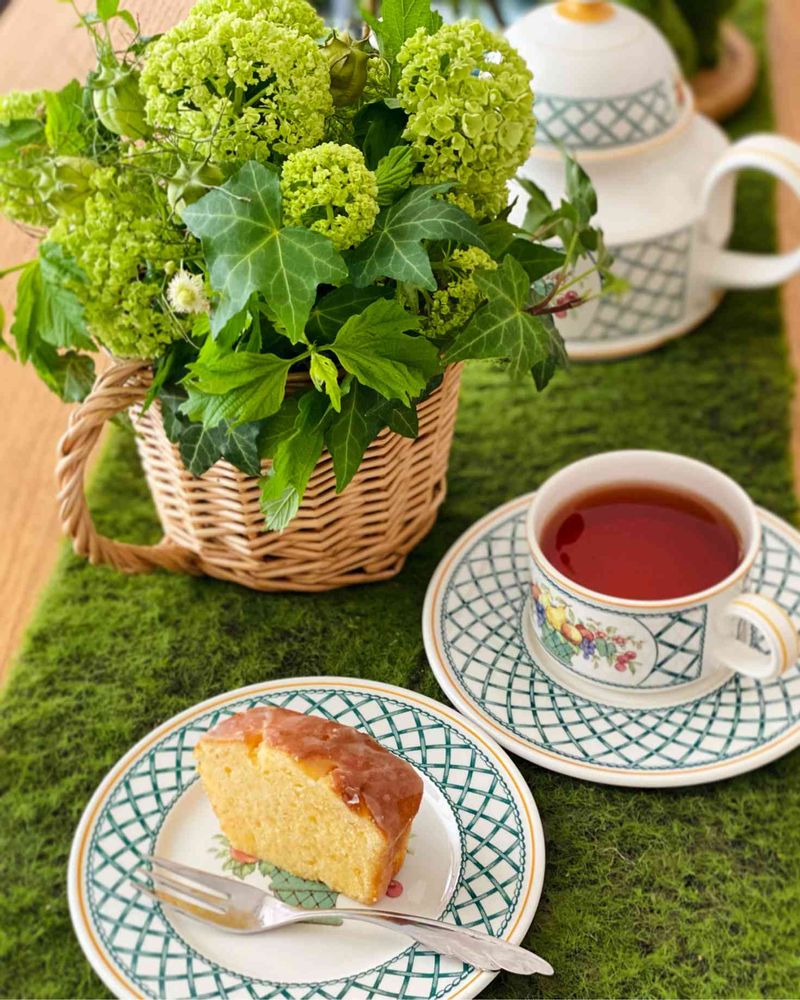 グリーンと手作りケーキと紅茶、外出出来ないゴールデンウィークに、とても癒されました❤️☕️