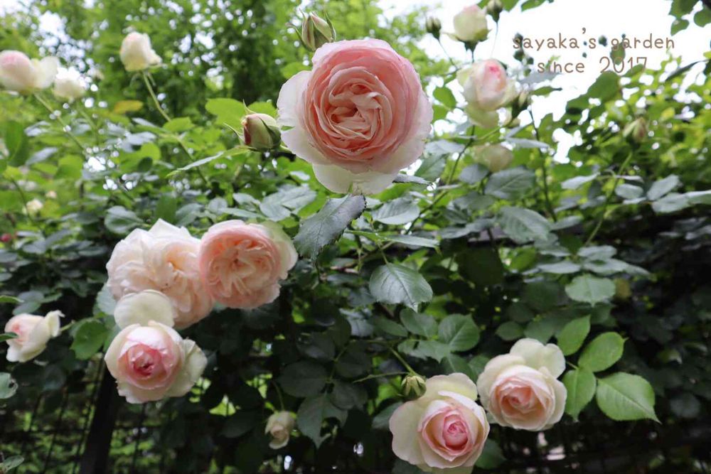 ピエールドゥロンサールの枝変わりです😃我が家はブランさんをアーチとフェンスに誘引しています😃