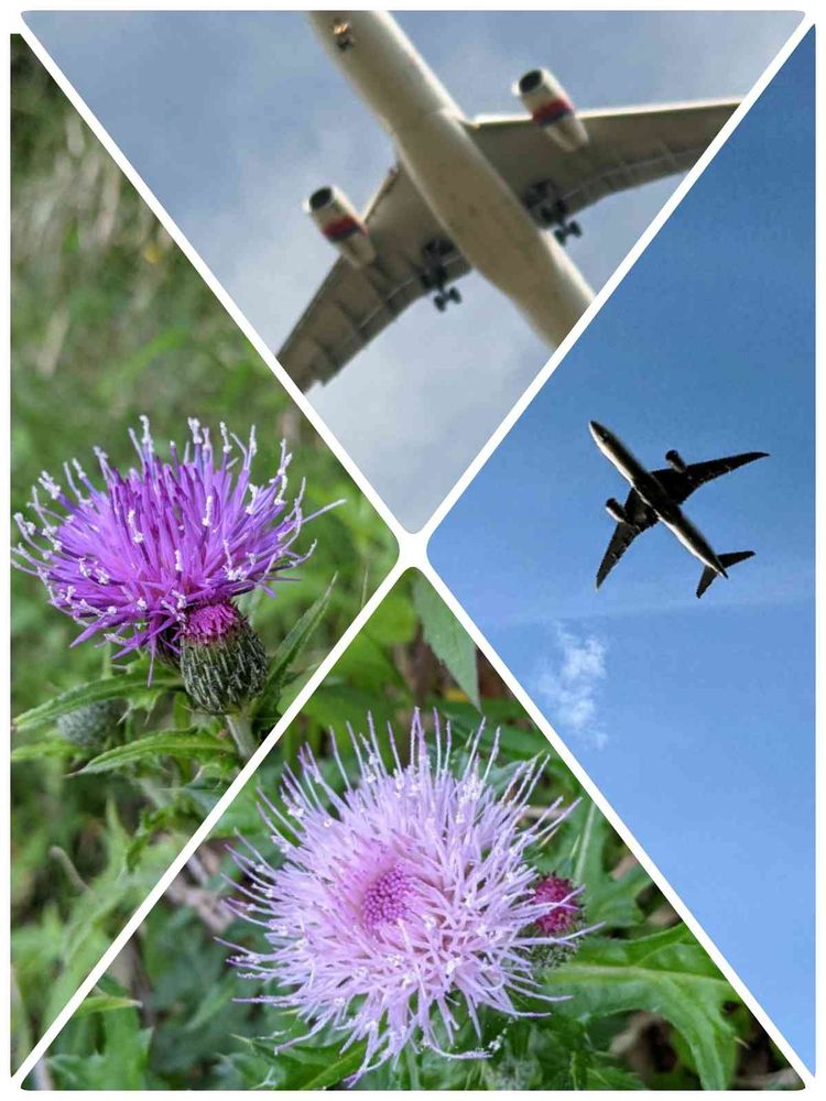 住まいは防音工事をしているので家の窓から見える✈️は静かですが お散歩中はうるさいです💦