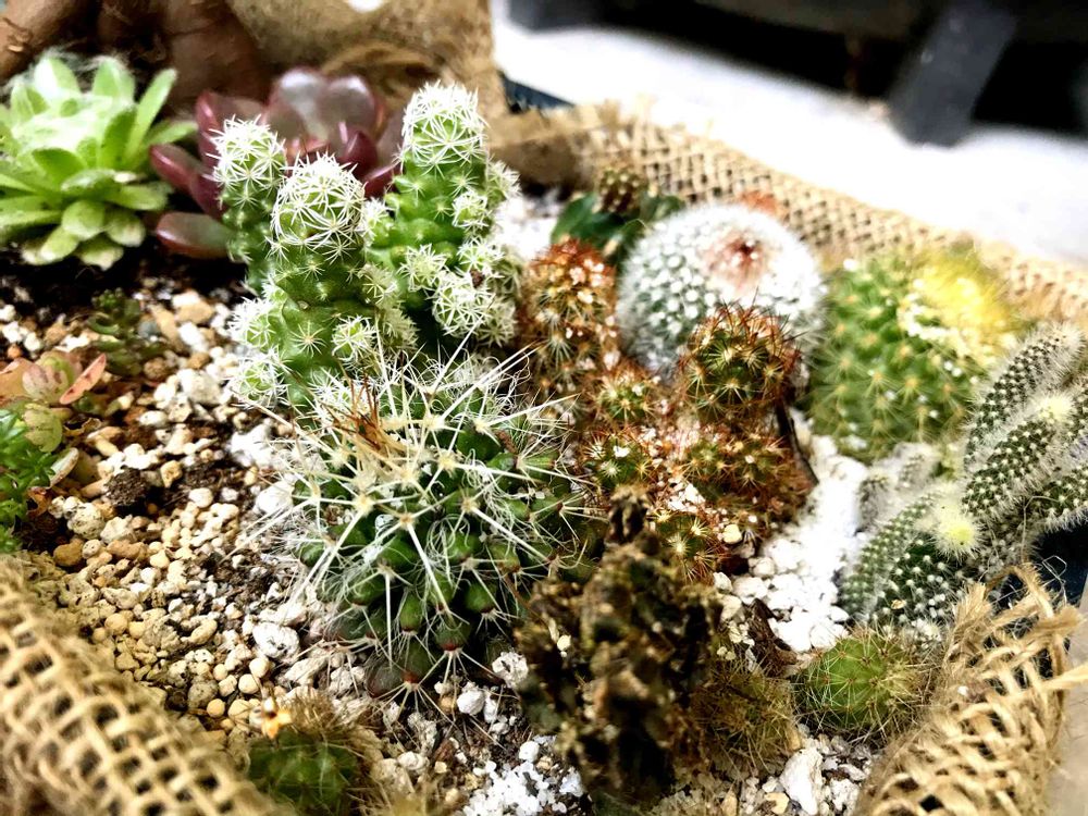 手前のサボテンは マミラリア 白竜丸だと思います❗️