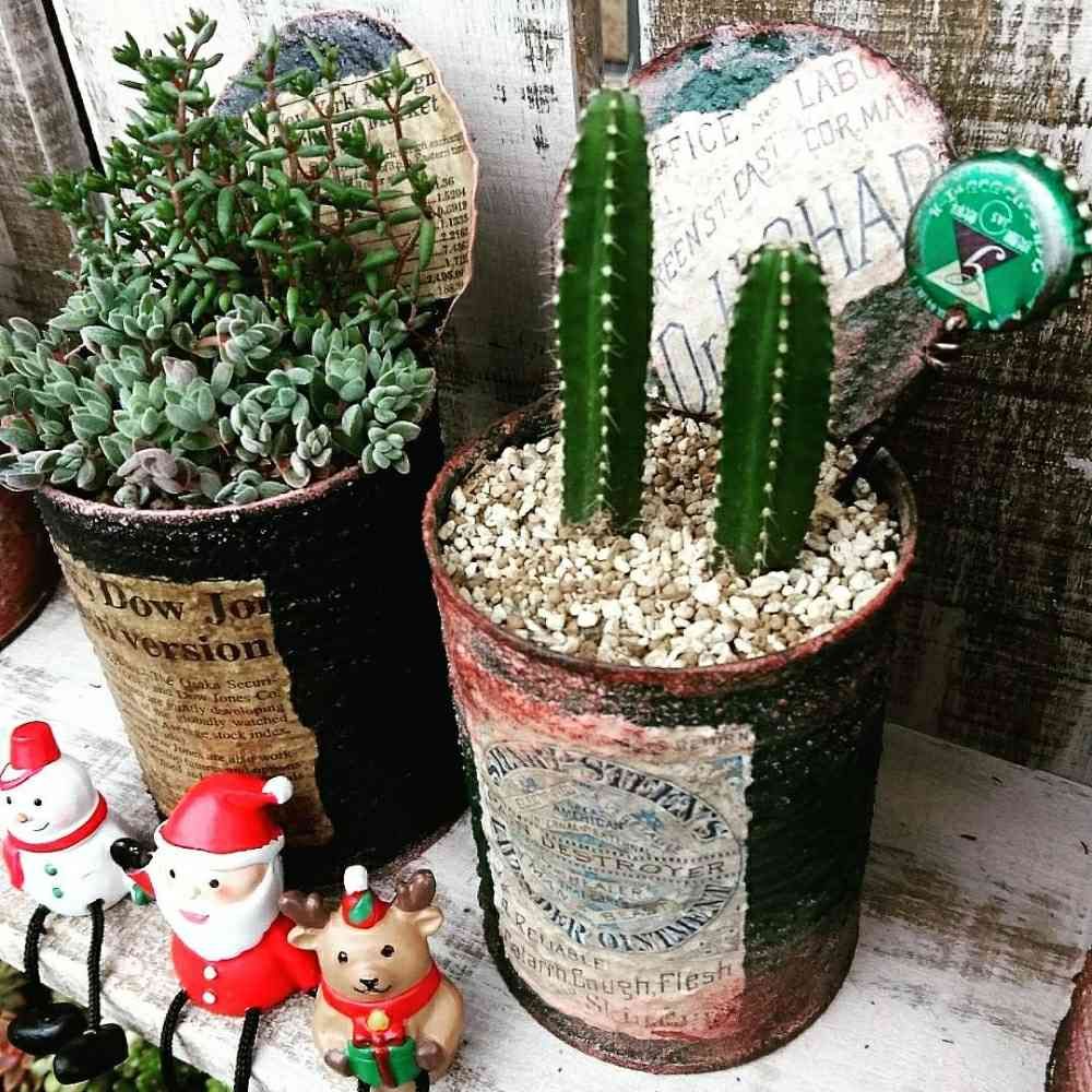濃い色のリメ缶と🌵ちゃんいいよね〜♡