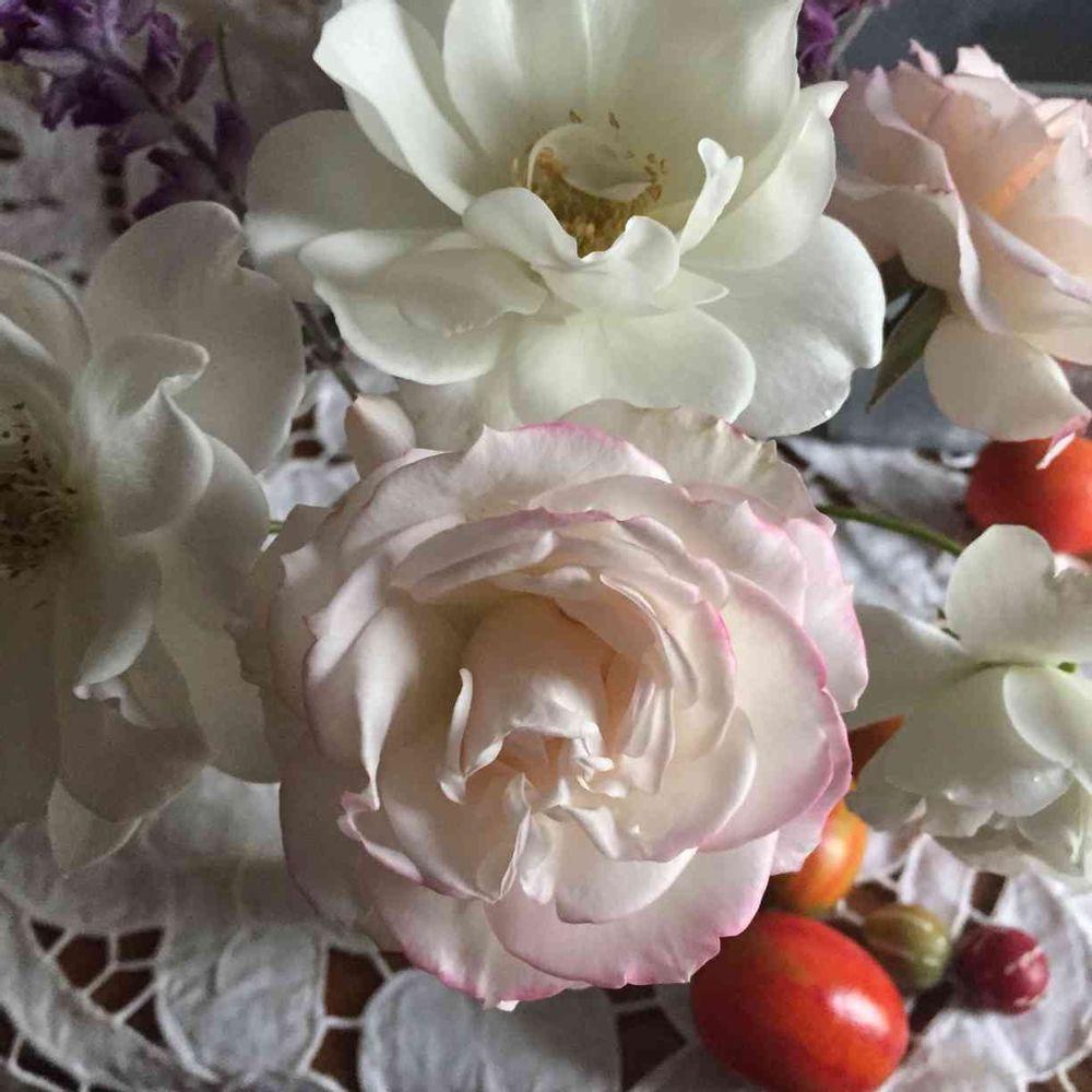赤い実、緑の実、セージの紫、それぞれがバラさんの優しさを引き立ててらっしゃいますね✧︎◝︎(*´꒳`*)◜︎✧︎˖