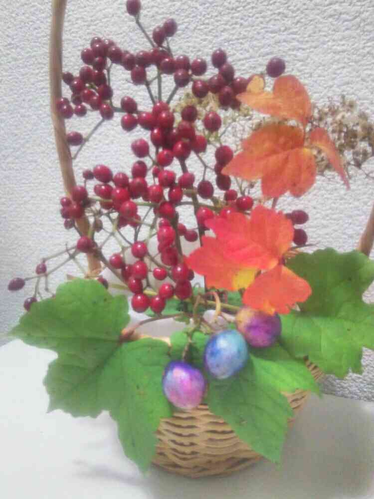 色合いがとても💕ですね。それに手かごに挿すと、秋のものが映えるね。アッケさんナイス👍