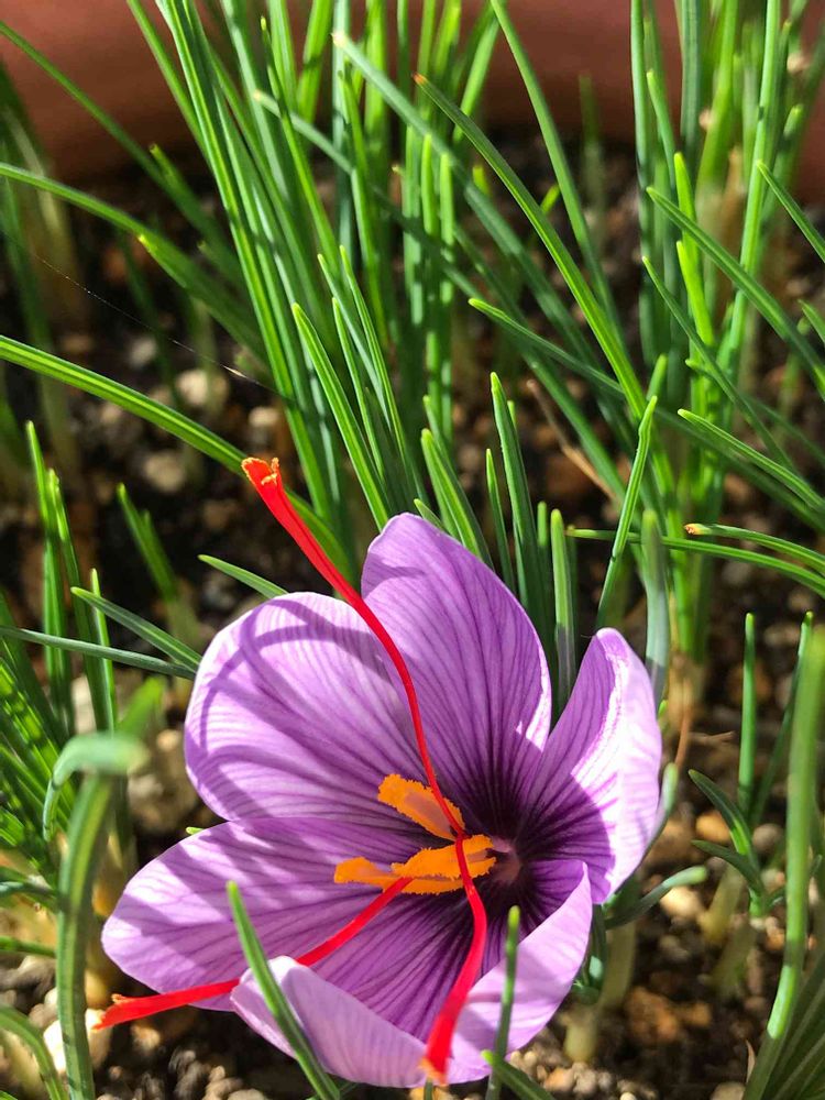 クロッカスに似ているけど、この赤いしべがサフランの特徴ですね🤗紫色が素敵です💕