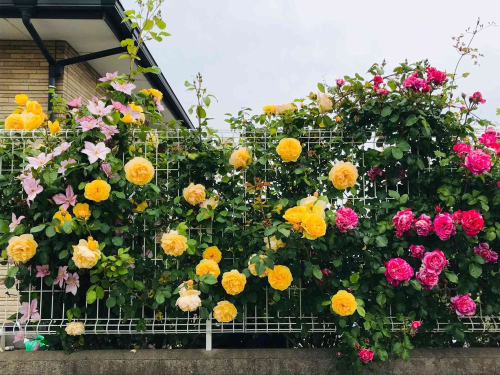 西側フェンスのつるバラ