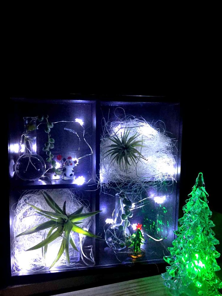 チランジアを入れてイルミネーションライトでライトアップしてみました😊