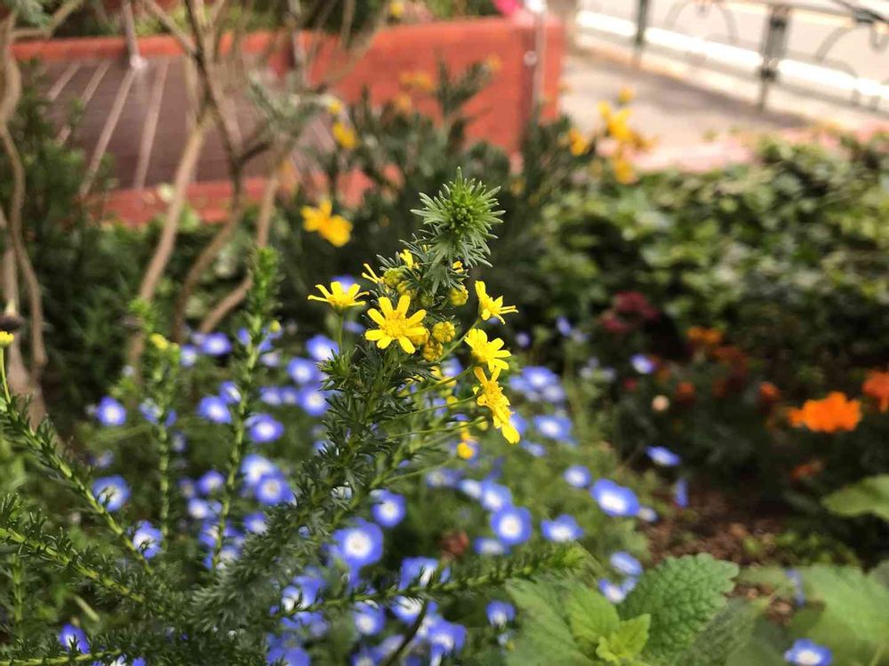 細長く伸びた葉っぱが特徴の黄色いお花🌼