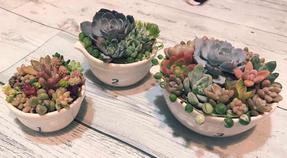 多肉ちゃんの寄せ植え可愛いですね( ˶ˆ꒳ˆ˵ )