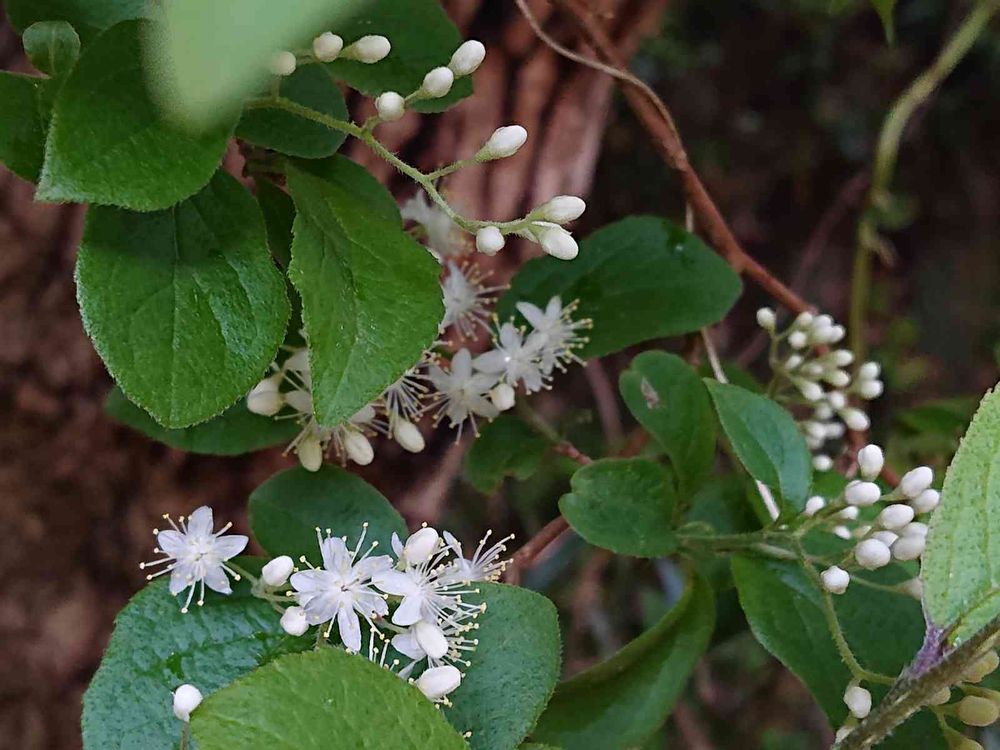 5月3日、里山の田んぼに下りる道の脇に咲いていました。ツル性の植物のように思われます。