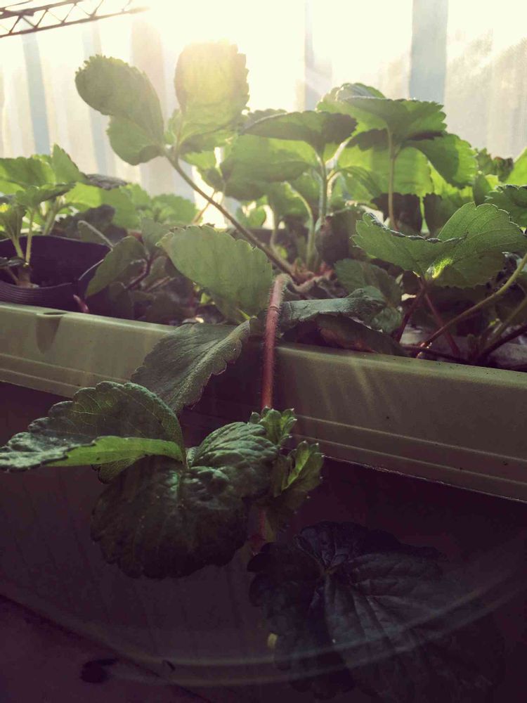 朝日を浴びてスクスク大きくなってる🍓とよのか苺です。