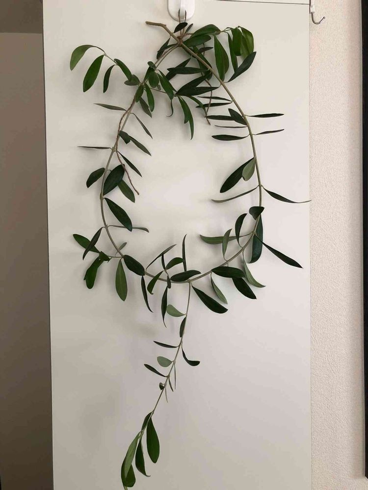 なぜかグングン伸びた長い一本のオリーブの枝をついに切ってしまう。もったいないから、枯れるまでインテリア🦚