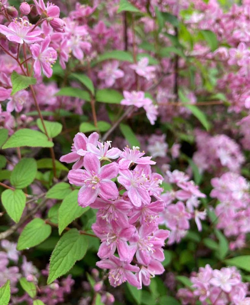 去年6月に兼六園の梅林でよく似た花を見かけました。今朝探しましたがまだ咲いていないようです。紅花梅花空木だと思っていましたが、ロザリンドって園芸品種は梅花空木でしょうか?