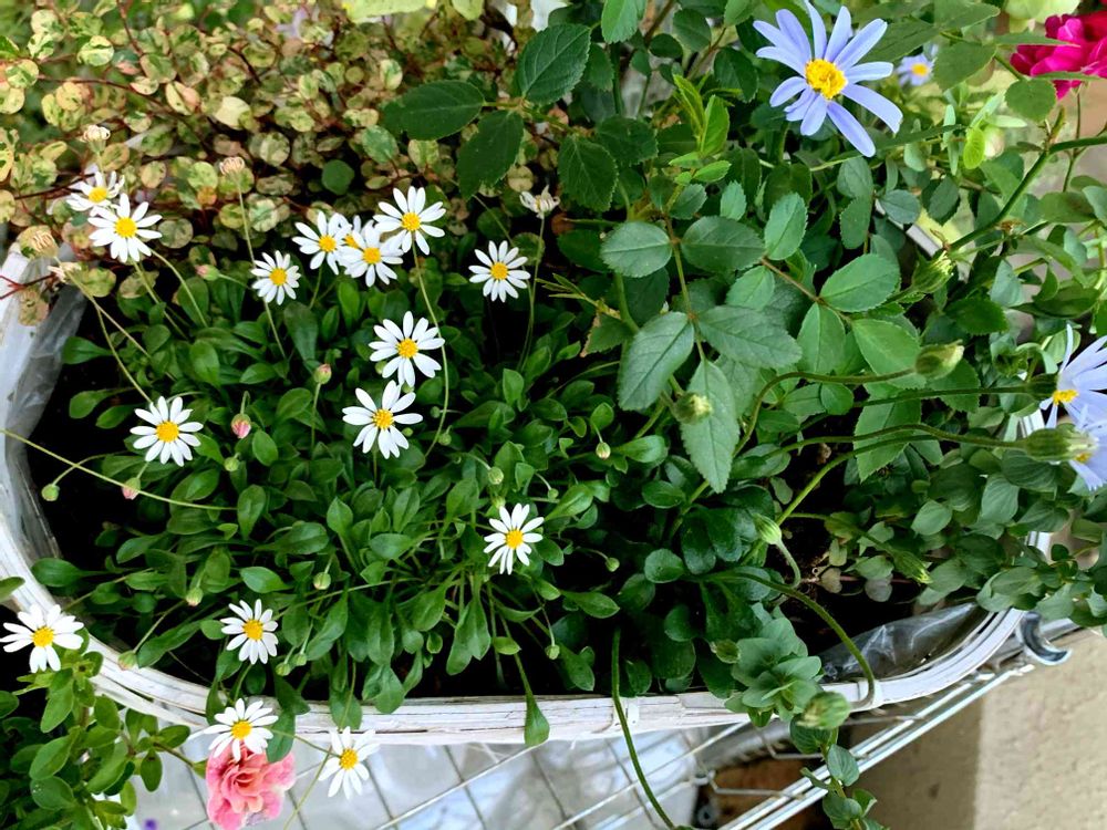 バルコニー/ベランダ,ワイヤープランツ スポットライト,ブルーデイジー アズールブルーの投稿画像