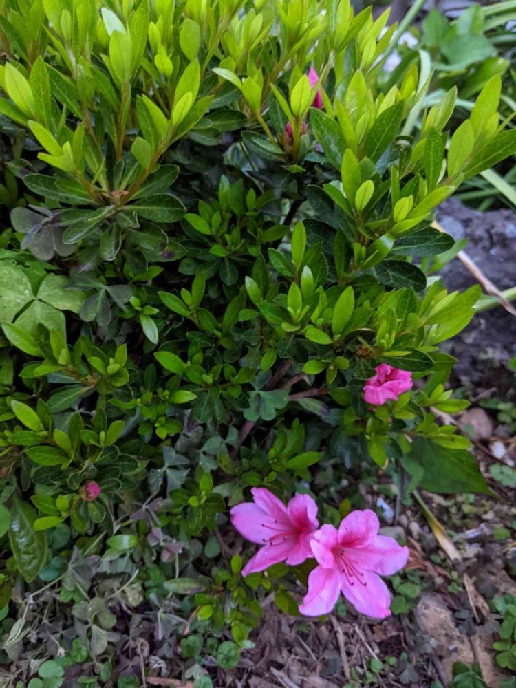 ちっちゃい!ツツジ。ダケド、花は、咲きました。通るところだから、また、小さく切られてしまいます。😅😭