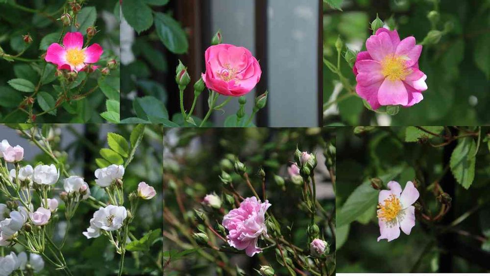 左下:ノイバラ 中央下:夢乙女、右下:名無し実生