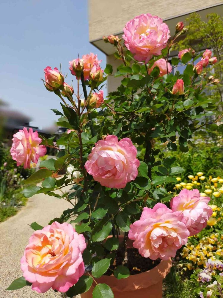 ただいま我が家で一番たくさんの花を咲かせている薔薇が、このイーハトーブの朝です🌹✨