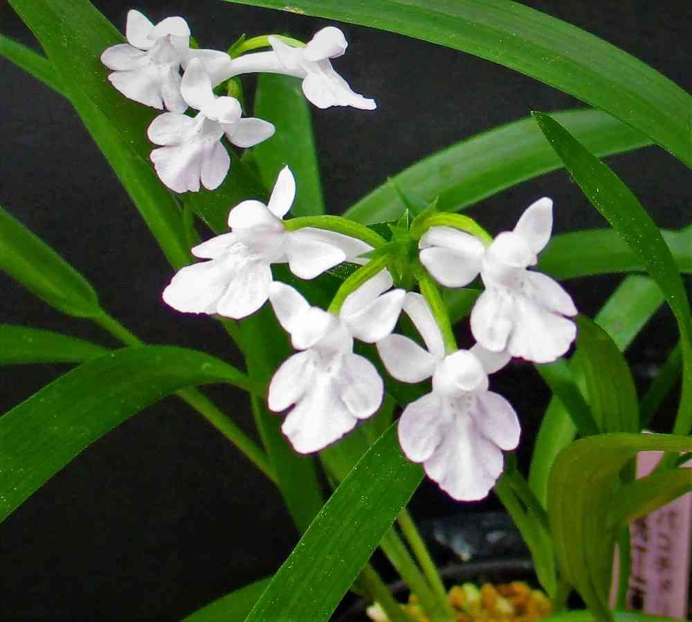 テバコチドリは円弁無点花しか無いのですが、広島や紀州、小豆島、千葉、九州、関東のウチョウランはたくさん栽培しております。