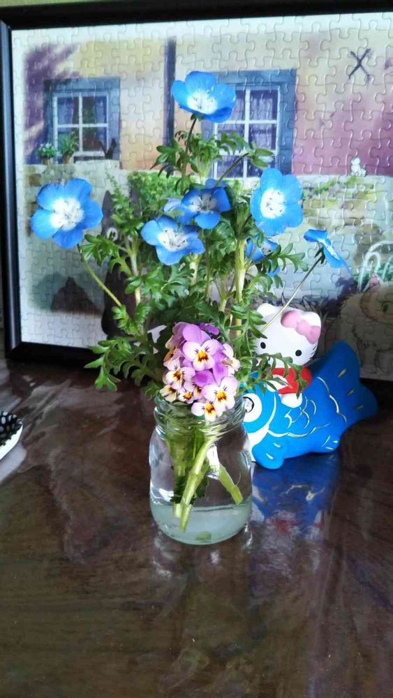バックのジグゾーパズルの風景とネモフィラがマッチして、いい感じです🤗