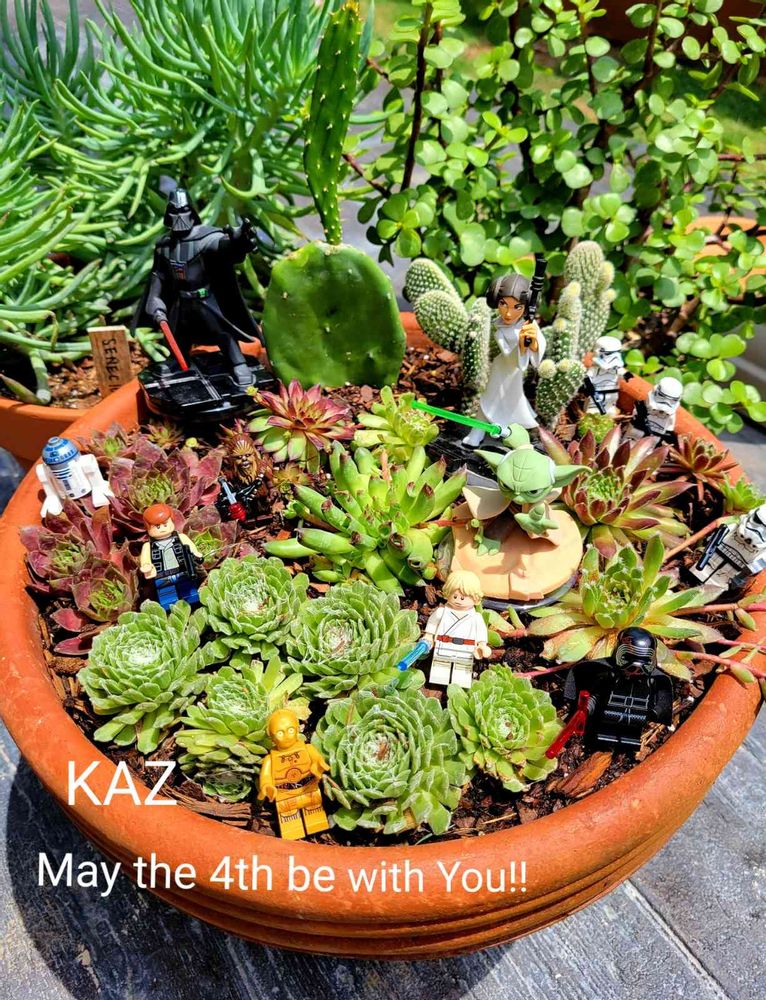 そうです🗓️May the 4th とかけてスターウォーズの日で息子達のLEGOのキャラクターと多肉コラボしてみました🌱🌵フォローありがとうございます(𖧷ᴗ͈ˬᴗ͈)⁾⁾