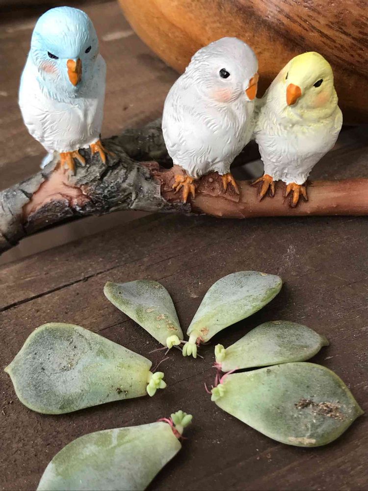 台風でバラバラになった葉っぱ、掃除の時に拾い集めておいたらもう芽が出てる🤗早いね~