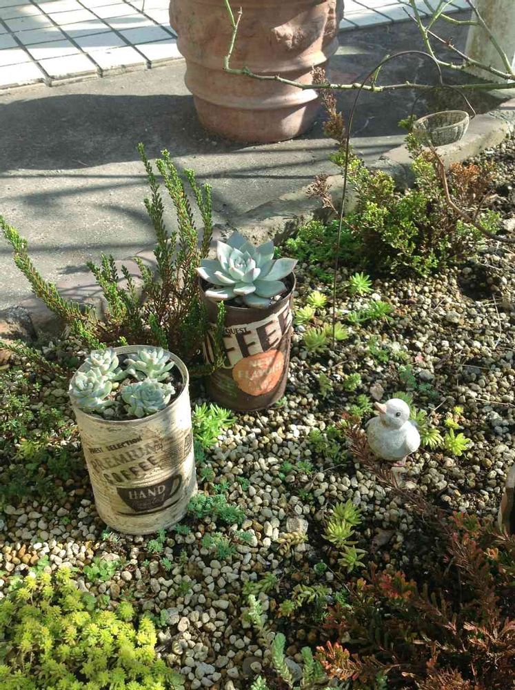 広い庭,リメ缶,多肉植物 エケベリアの投稿画像