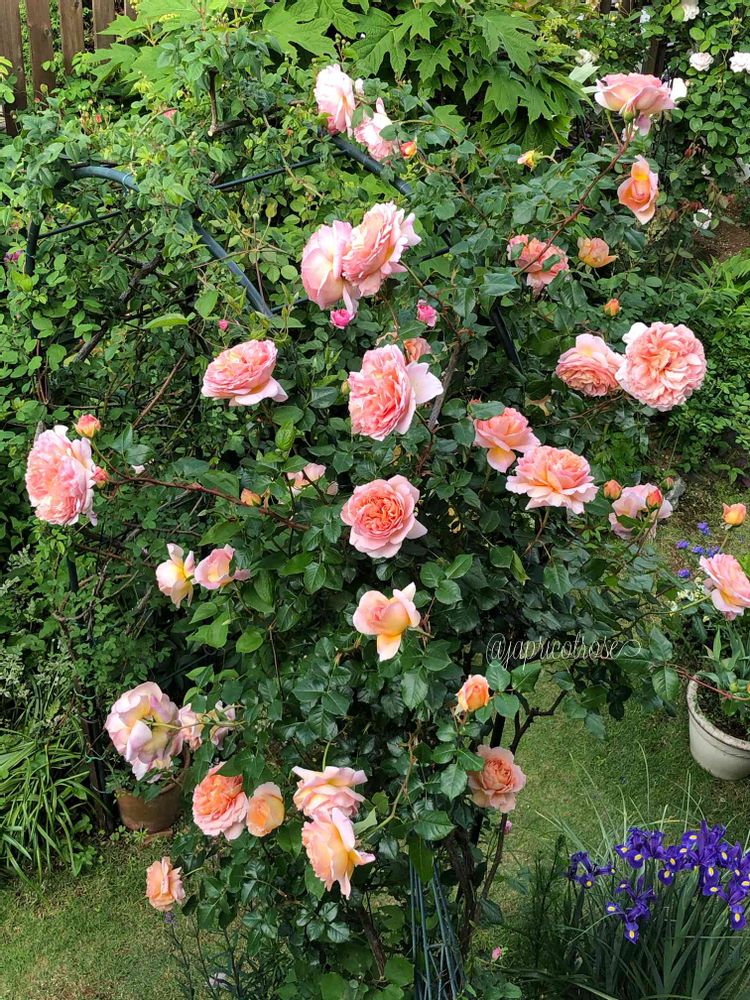 アーチの下からだとうなじばかりでパッとしないけど、ベランダから見たら満開でした🌹\(^o^)/
