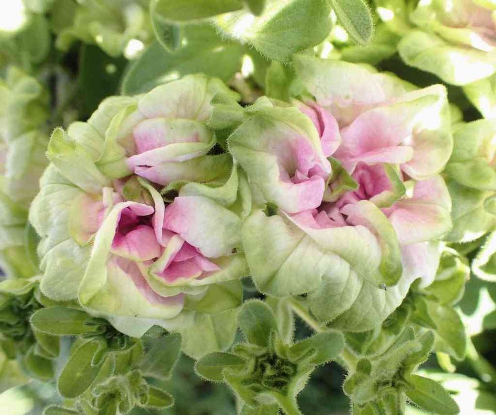 「グリーンワールド」に参加します😊これは、湘南ローザヴェルデ、八重でグリーンを含むペチュニア湘南シリーズの、ピンクを帯びる品種です(*^^*)前出のヴィオーレヴェルデに比べると、株がまとまりが良くてしっかりしている印象ですね💖😍可愛いお花です💕
