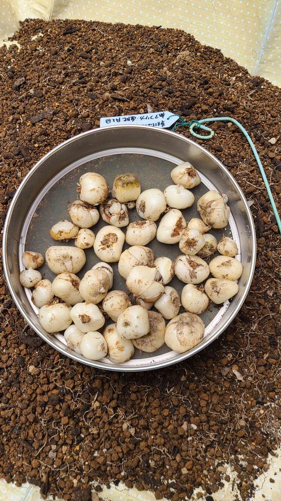 今年の球根は出来がいい。かなり大きいです。